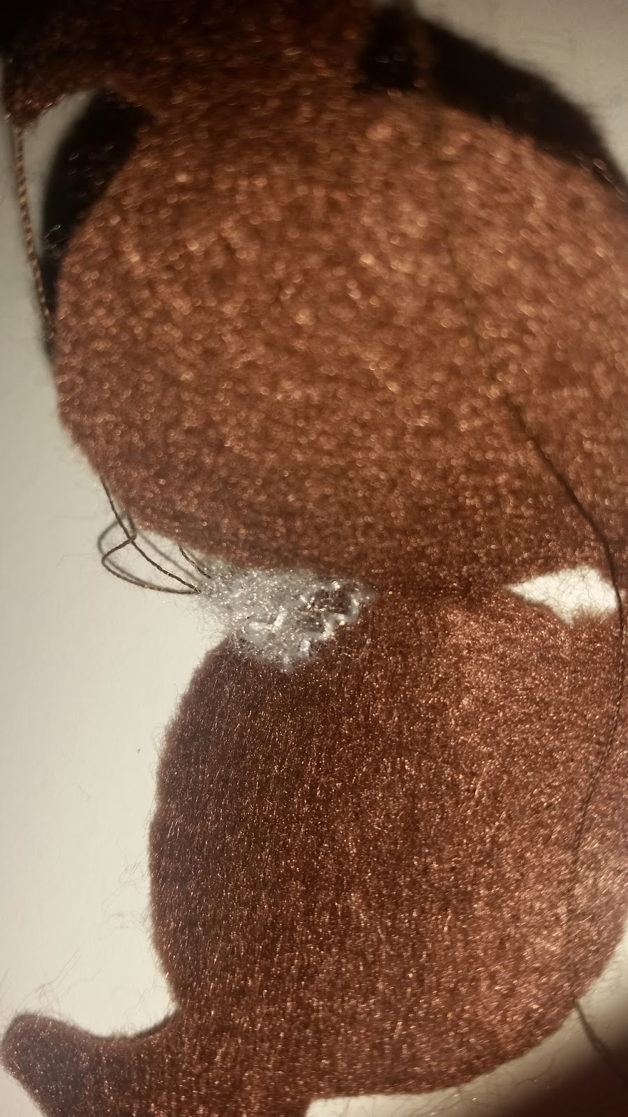 Then, once I finished the first part of the bear's ear, I stuffed it with stuffing. Every little while I added a bit of stuffing inside so by the time I finished, each part would be stuffed.